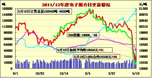 5月18日電子撮合成交放量,近強遠弱。今日撮合早盤多數(shù)以低于昨日收市價低開,但撮合價格相對現(xiàn)貨的低廉使得不少買家按耐不住,一方面用棉企業(yè)確實缺少資源,另一方面近日的會議也給市場注入了信心,入場采購者增多,在買盤的拉動下行情震蕩回升,下午漲幅有所收窄,但多數(shù)合同直至收市依舊飄紅,全天成交大幅放量。交易總成交43780噸,較上一日增加13560噸,訂貨量減少6620噸,累計訂貨150840噸。