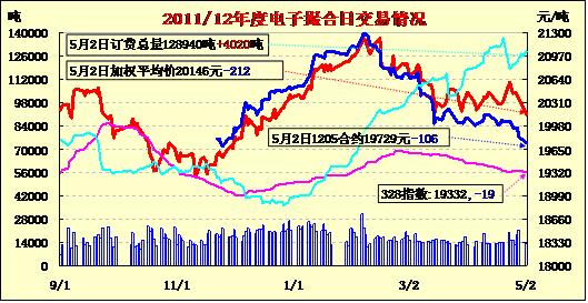 5月2日縮量增倉(cāng),弱勢(shì)依舊。今日撮合除遠(yuǎn)月MA1210合同高開(kāi)收漲外,其他合同均低開(kāi)低走,盤(pán)終收跌;當(dāng)日遠(yuǎn)月MA1210合同全天僅成交一筆,均價(jià)漲至21000元;MA1208合同收盤(pán)報(bào)跌110元,其他合同跌幅在64-105元之間。交易總成交13040噸,較上一日減少8120噸,訂貨量增加4020噸,累計(jì)訂貨量128940噸?;久嫔希?jié)日期間,市場(chǎng)還在對(duì)增發(fā)配額傳聞的猜測(cè)中,印度市場(chǎng)再次爆出將放開(kāi)出口限制政策,此舉令短期棉價(jià)再次承壓。從廣交會(huì)上獲悉的消息看,外商參與的較少,訂單情況或不樂(lè)觀。
