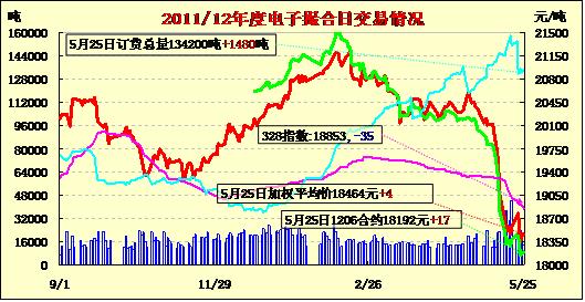 5月25日電子撮合均價(jià)續(xù)漲,縮量增倉。隔夜,在美棉出口周報(bào)數(shù)據(jù)利好的支持下,紐約期棉一改前幾日的弱勢大幅反彈,主力7月合約結(jié)算價(jià)73.94美分/磅,漲243點(diǎn),遠(yuǎn)期12月合約70.67美分/磅,漲192點(diǎn),其他合約也普遍大幅收漲。撮合市場受此提振早盤均高開,隨后窄幅震蕩,終盤全線微漲。交易總成交13740噸,較上一日減少2680噸,訂貨量增加1480噸,累計(jì)訂貨134200噸?;久嫔?,美國農(nóng)業(yè)部的最新供需報(bào)告顯示,2012/13年度全球棉花產(chǎn)量縮減至2541萬噸,消費(fèi)回升至2394萬噸;雖然從數(shù)據(jù)上較之前數(shù)據(jù)有所好轉(zhuǎn),但整體供給過剩的局面依舊存在。目前經(jīng)濟(jì)形勢的不確定性仍制約各方的交投情緒。