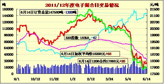 6月14日放量減倉,均價小幅反彈。各合同漲幅在100元之下,其中最大漲幅為MA1209合同;漲96元。交易總成交14280噸,較上一日增加3420噸,訂貨量減少1320噸,累計訂貨147580噸。目前市場寄望于國家收儲政策,當前有關收儲的各色傳言四起對市場又是一輪炒作;除此之外,對于天氣對棉花產量等因素擔憂也并未減少。隨著長江流域的汛期來來臨,據(jù)國家防洪信息顯示,今年汛期全國多雨區(qū)范圍較去年明顯偏大,區(qū)域性強降水過程較常年偏多,洪澇災害可能重于去年,不排除發(fā)生流域性大洪水的可能,特別是長江發(fā)生大洪水的幾率越來越大。長江流域是國內棉花的三大產區(qū)之一,未來一旦發(fā)生洪水,國內棉花產量不排除出現(xiàn)大幅減產可能。