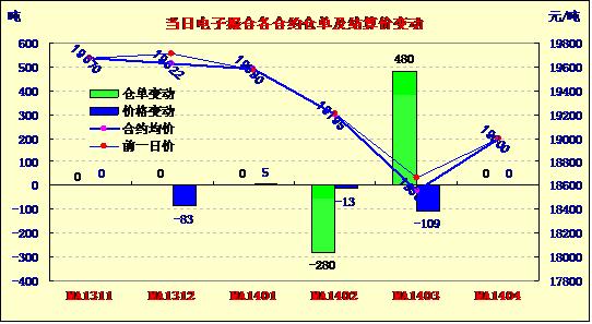 11月5日,商品棉交易各合開盤高低不一,多數(shù)下跌。MA1311平均價19670不變,MA1312均價19622跌83,MA1401均價19580漲5,MA1402平均價19195跌13,MA1403均價18555跌109,MA1404均價19000持平。交易成交37660噸,較上一交易日減少7780噸。訂貨量增加200噸,累計訂貨18280噸。