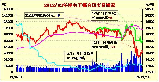 12月11日,商品棉交易各合同開盤高低不一,日內(nèi)窄幅波動(dòng),均價(jià)小幅上漲。MA1312均價(jià)19005不變,MA1401均價(jià)18877漲19,MA1402平均價(jià)18464漲12,MA1403均價(jià)18334漲6,MA1404均價(jià)18205漲2,MA1405均價(jià)18225不變。交易成交10080噸,較上一交易日減520噸。訂貨量不變,累計(jì)訂貨16480噸。