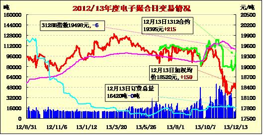 12月13日,商品棉交易各合同開盤高低不一,均價(jià)漲跌不一。MA1312均價(jià)19395漲215,MA1401均價(jià)18959跌66,MA1402平均價(jià)18250跌172,MA1403均價(jià)18224跌94,MA1404均價(jià)18205漲88,MA1405均價(jià)18225不變。交易成交12320噸,較上一交易日增8040噸。訂貨量不變,累計(jì)訂貨16420噸。