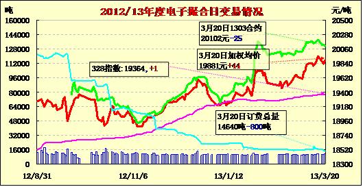 3月20日,商品棉交易各合同開(kāi)盤(pán)高低不一,日內(nèi)寬幅震蕩,終盤(pán)近跌遠(yuǎn)漲。當(dāng)日MA1303、MA1304和MA1305價(jià)格分別跌25元/噸、8元/噸和20元/噸,MA1305、MA1306和MA1307合同價(jià)格分別漲68元/噸、70元/噸和40元/噸。交易成交11340噸,較上一交易日增740噸。訂貨量減800噸,累計(jì)訂貨14640噸。據(jù)了解,企業(yè)陸陸續(xù)續(xù)收到了滑準(zhǔn)稅配額的通知,數(shù)量是3月之前企業(yè)儲(chǔ)備棉競(jìng)拍數(shù)量的1/3,但配額并未到手。目前港口外棉價(jià)格經(jīng)歷大幅上漲后,在缺少配額的條件下,通關(guān)數(shù)量基本很少,庫(kù)存壓力漸顯。國(guó)內(nèi)皮棉市場(chǎng)方面,銷(xiāo)售方積極提價(jià)銷(xiāo)售,但目前現(xiàn)貨市場(chǎng)貨源并不多,成交量還是不大。紡織企業(yè)主要還是打算通過(guò)獲取儲(chǔ)備棉資源,但其預(yù)見(jiàn)未來(lái)國(guó)家儲(chǔ)備棉投放量足以滿足其需求,因此并不急于競(jìng)拍。