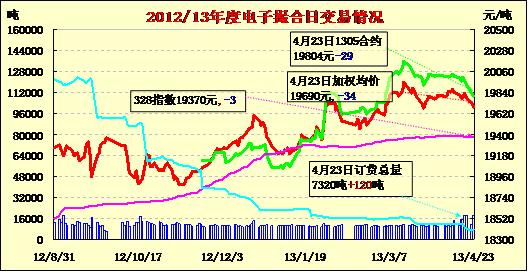 電子撮合增倉增量多數(shù)續(xù)跌(4-23)