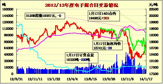 1月17日,商品棉交易各合同多數(shù)低開,漲跌互現(xiàn)。MA1401均價19490漲303,MA1402平均價18862跌23,MA1403均價18812跌49,MA1404均價18578跌189,MA1405均價18530漲30,MA1406均價18578跌19。交易成交10120噸,較上一交易日增80噸。訂貨量減少220噸,累計訂貨16320噸。