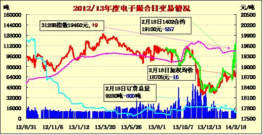 2月18日,商品棉交易市場交易成交9700噸,較上一交易日增加700噸。訂貨量減少800噸,累計(jì)訂貨9280噸。今日商品棉交易各合同開盤高低不一,日內(nèi)窄幅震蕩,均價漲跌互現(xiàn)。成交主要集中在MA1405、MA1406和MA1407合同,分別成交2200噸、3200噸和3360噸,其余合同成交清冷,整體成交量仍舊清淡。訂貨量減少,MA1402、MA1403和MA1404訂貨量分別減少100噸、500噸和200噸,其余合同訂貨量保持不變。目前MA1403為主要訂貨合同,訂貨6740噸。近月合同僅訂貨800噸。
