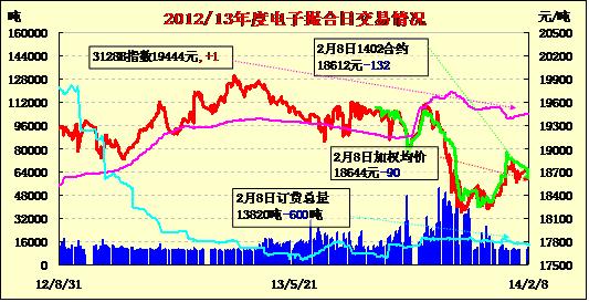 2月8日,商品棉交易各合同多數(shù)高開,均價(jià)漲跌互現(xiàn)。MA1402合同平均價(jià)18612元/噸,MA1403合同平均價(jià)18852元/噸,MA1404合同平均價(jià)18630元/噸,MA1405合同平均價(jià)18569元/噸,MA1406合同平均價(jià)18539元/噸,MA1407合同平均價(jià)18539元/噸。交易成交12440噸,較上一交易日增加1780噸。訂貨量減少600,累計(jì)訂貨13820噸。
