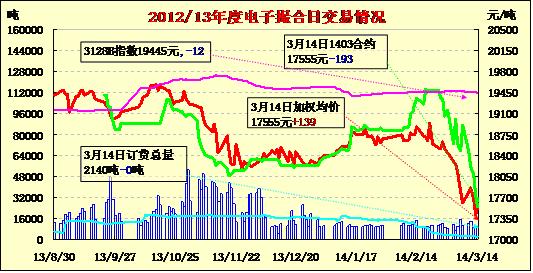 3月14日全國棉花交易市場商品棉交易成交10180噸,較上一交易日不變。訂貨量不變,累計訂貨2140噸。今日商品棉各合同開盤高低不一,日內(nèi)寬幅震蕩,均價下跌。國內(nèi)市場:企業(yè)采購原料表現(xiàn)消極,僅維持生產(chǎn)需要,目前觀望情緒較重,等待政策面的明朗;港口外棉價位高企,整體成交清淡,目前港上主要以印度棉為主。國際市場:近期印度國內(nèi)棉價略跌,市場需求一般,全國籽棉收購進度開始放緩;巴基斯坦國內(nèi)棉市持續(xù)低迷,軋花廠對本年度后期棉價上漲已不抱希望,大部分軋花廠拋儲庫存意愿強烈。