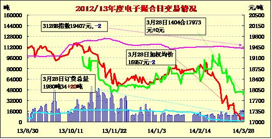 3月28日全國棉花交易市場商品棉交易成交15380噸,較上一交易日減少2180噸。訂貨量增20噸,累計訂貨1980噸。今日商品棉各合同開盤高低不一,全天寬幅震蕩走勢,均價上漲。今日官方正式公布關(guān)于調(diào)整儲備棉銷售有關(guān)政策的公告;新疆南疆地區(qū)棉農(nóng)已經(jīng)開始春播各項準備,今年整體播種期較2013年要推遲一周時間左右,面積或有小幅下滑趨勢;港口外棉近期成交低迷,企業(yè)官方情緒較重。
