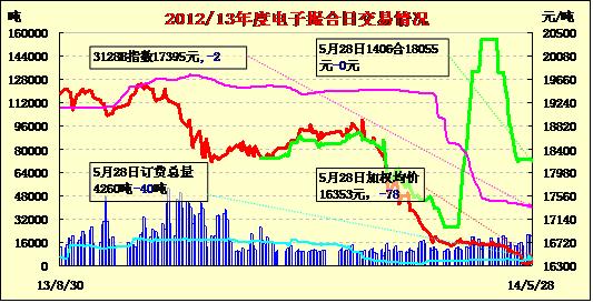 錦橋紡織網(wǎng)—資訊頻道> 棉花信息> 電子撮合>正文 電子撮合除首期合約不變外全線收跌(05-28)