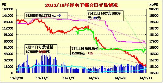 電子撮合遠(yuǎn)期增倉弱市收跌(07-11)