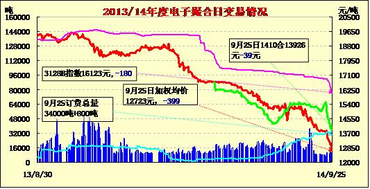 電子撮合增倉續(xù)跌遠期跌破1.3萬元(09-25)