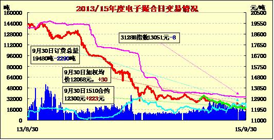 9月30日 電子撮合交易成交13710噸,較上一交易日增加470噸。今日訂貨量減少2290噸,累計訂貨19480噸。今日現(xiàn)貨掛牌交易各合同開盤多數(shù)高開,盤中窄幅震蕩,除MA1603收跌外,其他合同均收漲。從昨日開始,新疆大部分地區(qū)氣溫急降,并出現(xiàn)霜凍現(xiàn)象。據(jù)調查,9月29、30日,南疆巴楚、麥蓋提、伽師及阿克蘇的沙雅、庫車等地籽棉收購價格有小幅回落跡象, 40衣份、13%以內(nèi)水份籽棉交售價5.60-5.75元/公斤,個別棉區(qū)軋花廠報價低于5.60元/公斤。全棉紗市場局部下調,出貨量基本維持前期水平,進口紗仍占不少份額,地產(chǎn)棉紗銷售不暢,普梳質優(yōu)紗,進口質優(yōu)氣流紡紗交易集中,高細精梳類需求不足,因臨近節(jié)假市場商家多數(shù)已進入節(jié)假氣氛提前歇業(yè)。
