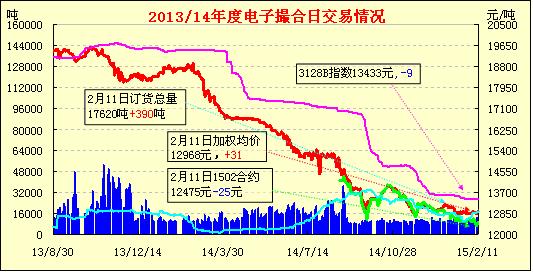 2月11日電子撮合交易成交8320噸,較上一交日減少2380噸。訂貨量增加390噸,累計(jì)訂貨17620噸。交易各合同開盤價(jià)高低不一,日內(nèi)震蕩整理,均價(jià)近跌遠(yuǎn)漲。截止1月底全國棉花商業(yè)庫存388萬噸,較上月減少13萬噸,其中新疆商業(yè)庫存量未出疆231萬噸,內(nèi)地商業(yè)庫存量157萬噸。另據(jù)中國海關(guān),1月份我國累計(jì)進(jìn)口棉花16.1萬噸,較去年同期減少10.3萬噸,減幅39%。同比減少13.1萬噸,減幅45%。