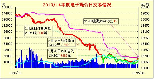 2月28日電子撮合交易成交10040噸,較上一交日增加1850噸。訂貨量增加110噸,累計訂貨20320噸。今日現(xiàn)貨掛牌交易多數(shù)合同高開,早盤沖高,午后震蕩走低,均價續(xù)漲。據(jù)了解,春節(jié)前一周和節(jié)后這幾天,青島港保稅棉入庫量有明顯的增加,部分倉庫在節(jié)前僅剩余一兩千噸庫存的,到目前已經(jīng)達(dá)到上萬噸的庫存。目前主要入庫的是美棉、印度、西非和巴西棉;目前國內(nèi)皮棉市場仍處于有價無市的狀態(tài),下游陸續(xù)恢復(fù)生產(chǎn)。