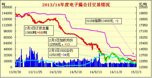 2月3日電子撮合交易成交9020噸,較上一交日減少1030噸。今日訂貨量增加690噸,累計訂貨13800噸。今日現(xiàn)貨掛牌交易各合同開盤高低不一,日內(nèi)窄幅整理,均價漲跌不一。國內(nèi)皮棉市場走貨極為清淡,紡織企業(yè)補庫需求不高,整個現(xiàn)貨市場成交低迷;全棉紗價格較上周持平,下游需求縮減,市場零散成交為主,無大宗批量成交,質(zhì)優(yōu)普梳紗需求集中,精梳紗需求乏力,氣流紡紗散量交易。