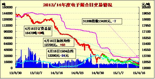 4月16日電子撮合交易成交15530噸,較上一交易日減少60噸。訂貨量不變,累計訂貨16470噸。交易各合同開盤高低不一,盤中震蕩上行,均價近跌遠漲。三屆二次理事會梁東亞提出目前新疆兵團棉花銷售是最大的問題,兵團176萬噸棉花,目前銷售32.7%,銷售壓力較大;未來兩天,北疆各地、天山山區(qū)、哈密北部、巴州北部等地有小到中雨,其中伊犁河谷大部、精河至奇臺的北疆沿天山一帶、天山山區(qū)等地的部分地區(qū)有中到大雨(山區(qū)雨轉(zhuǎn)雪),局部暴雨(山區(qū)暴雪),風口風力9級左右,氣溫下降5~8度,對春播進度有不利影響。