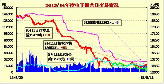 5月11日電子撮合交易成交11720噸,較上一交易日減少2390噸。訂貨量增加110噸,累計訂貨15450噸。交易各合同高開,日內(nèi)震蕩走勢,均價漲跌不一。截至5月初,大部棉區(qū)播種接近尾聲。調(diào)查顯示,新疆預(yù)計植棉面積3300萬畝,較去年減少10%,減幅較上月縮小1個百分點;預(yù)計總產(chǎn)433萬噸,較去年減少3%,減幅縮小2個百分點;近期國內(nèi)皮棉現(xiàn)貨市場報價持穩(wěn),走貨一般,棉商以出貨為主。