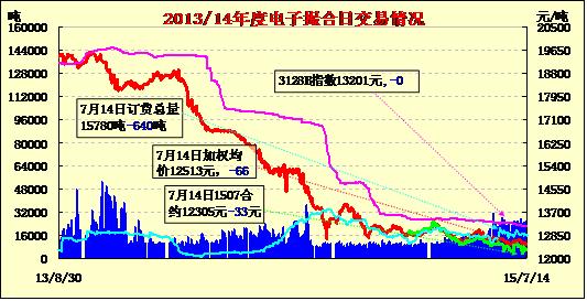 7月14日電子撮合交易成交23060噸,較上一交易日減少1250噸。訂貨量減少640噸,累計訂貨15780噸。交易各合同低開,日內(nèi)震蕩下行,均價下跌。7月14日,新疆生產(chǎn)建設(shè)兵團競賣專場推出棉花消息一經(jīng)公布,立刻引起業(yè)內(nèi)熱烈討論,有貿(mào)易商認為,對現(xiàn)貨市場并未形成打壓,但給現(xiàn)貨銷售信心帶來了一定沖擊。目前市場資源集中增多,對于手中無存貨的貿(mào)易商來說,意味著又多了一種獲得資源的渠道,而紡織企業(yè)依舊隨用隨購,淡定自若。