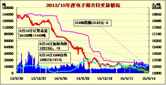 8月14日電子撮合交易成交17340噸,較上一交易日增加4760噸。訂貨量增加1440噸,累計(jì)訂貨24120噸。交易各合同開盤高低不一,盤中橫盤整理,均價(jià)多數(shù)上漲。近日受人民幣貶值影響,國內(nèi)進(jìn)口紗貿(mào)易商紛紛上調(diào)報(bào)價(jià),每噸400元左右,有的甚至高達(dá)600元,前期已執(zhí)行訂單維持原價(jià),對于后期價(jià)格的上調(diào),下游企業(yè)并不買賬,直言可以用國產(chǎn)紗或者降價(jià)的進(jìn)口紗來替代。市場上成交數(shù)量有限,一部分為了加速資金回籠降價(jià)促銷,另有少量調(diào)價(jià)后的針織紗訂單成交,其貿(mào)易商和下游買方之間價(jià)差相對較大,產(chǎn)業(yè)鏈消化能力稍高。
