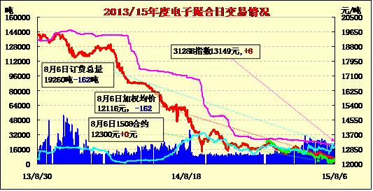 8月6日電子撮合交易成交21930噸,較上一交易日增加680噸。訂貨量增加570噸,累計(jì)訂貨19260噸。交易各合同多數(shù)低開,盤中震蕩下行,均價(jià)全線收跌。目前,新疆棉現(xiàn)貨價(jià)格穩(wěn)定,新疆機(jī)采棉3128B現(xiàn)貨價(jià)格在12700元/噸左右。但受當(dāng)前市場資源集中影響,銷售情況仍不樂觀,觀望情緒繼續(xù)維持,成交量多以單批成交為主。從輪出和競賣成交情況看,目前企業(yè)觀望情緒也較濃。目前商品棉現(xiàn)貨掛牌MA1601合同12100元/噸,鄭棉CF1601合約12385元/噸,兩者價(jià)差285元,根據(jù)MA1601最新的升貼水標(biāo)準(zhǔn)出現(xiàn)了跨市套利機(jī)會。