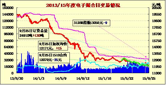 9月25日,電子撮合交易成交12380噸,較上一交易日減少100噸。訂貨量增130噸,累計(jì)訂貨24910噸。交易各合同開盤高低不一,盤中窄幅震蕩,終盤漲跌互現(xiàn)。據(jù)悉,目前在疆棉企開秤的企業(yè)越來越多,但是大量進(jìn)行收購的企業(yè)卻不多,部分棉花企業(yè)已經(jīng)預(yù)約棉花入庫公證檢驗(yàn),受今年棉花經(jīng)營難度增加及棉花質(zhì)量下降的影響,企業(yè)收購進(jìn)度比較慢。多數(shù)棉花企業(yè)籽棉收購價(jià)格在5.6-5.8元/公斤,個(gè)別企業(yè)收購報(bào)價(jià)在6.00元/公斤,收購形式仍然以現(xiàn)金當(dāng)日結(jié)算和棉農(nóng)約定期限結(jié)算兩種形式進(jìn)行,日收購數(shù)量在300-500噸。全棉紗整體行情處在“量平穩(wěn)、價(jià)微降”的態(tài)勢(shì),從市場(chǎng)動(dòng)態(tài)顯示,全棉紗32s銷量尚可,純滌紗市場(chǎng)成交量偏弱,但是價(jià)格走勢(shì)繼續(xù)向下調(diào)整。