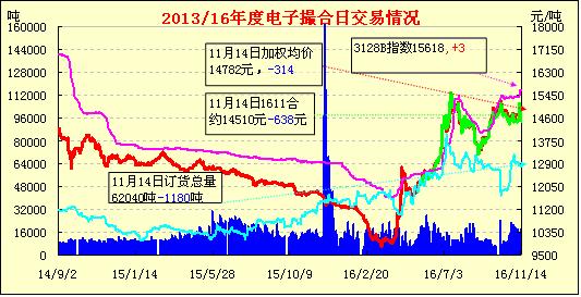 11月14日,電子撮合交易成交量增加,合約均價(jià)全部收跌,活躍交投主要集于中遠(yuǎn)月合同?,F(xiàn)貨市場(chǎng)出現(xiàn)浮動(dòng),而因紡企逐步面臨新棉采購(gòu)及疆棉運(yùn)輸出疆困難及運(yùn)費(fèi)上升,再加上印度貨幣政策影響下籽棉收購(gòu)加工受到限制,資金在10日晚強(qiáng)勢(shì)拉漲期貨,使得市場(chǎng)現(xiàn)貨商家挺價(jià)意愿明顯增強(qiáng),報(bào)價(jià)出現(xiàn)跟漲,幅度在300元/噸及偏上水平,北疆機(jī)采棉價(jià)格在15700元/噸毛重。一商家新疆拍儲(chǔ)棉1328級(jí)轉(zhuǎn)讓報(bào)15600元/噸,整體詢盤(pán)出現(xiàn)明顯增多,但臨近周末多數(shù)觀望等待下周看具體跟進(jìn)情況。