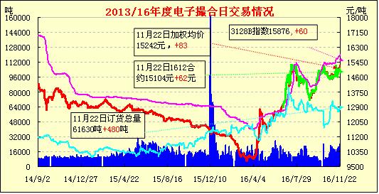 11月22日,電子撮合交易成交量增加,合約均價漲跌不一,活躍交投主要集于中遠(yuǎn)月合同。截止10月底,全省新棉采摘進(jìn)度60%以上,受降雨影響,后期花質(zhì)量逐漸變差,黑桃、爛桃增多,采摘進(jìn)度較慢;籽棉交售價由開秤之初的3元/斤上漲至3.7元/斤,荊州部分地區(qū)甚至報出了4元/斤以上的收購價。交售進(jìn)度約40%,各地農(nóng)民交售心態(tài)有所差異。荊州地區(qū)的農(nóng)民隨采隨曬隨銷,沒有過多囤棉;仙桃、枝江等地區(qū)反映農(nóng)民惜售情緒較重,認(rèn)為今年棉花資源少,價格一直在漲,希望棉價還會上漲,預(yù)計(jì)臨近春節(jié)交售。今年棉價的上漲有利于提高來年的植棉積極性,部分農(nóng)民規(guī)劃明年將增大植棉面積。