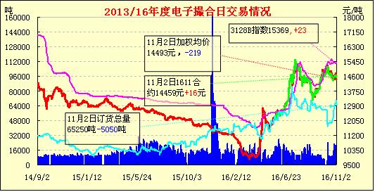 11月2日,電子撮合交易成交量下滑,均價多數(shù)收跌,MA1704跌幅最大,236元/噸,活躍交投主要集中于遠月合同。目前北疆雙29機采棉監(jiān)管庫毛重報價15400-15500元/噸,一些軋花廠因有些顏色級含41級的雙30機采棉報價也僅15500元/噸左右,3128級機采棉報價15000-15300元/噸。總體看,機采棉報價企穩(wěn)。今年,北疆雙30/雙29級的機采棉占比非常高,除雜質稍大外,可紡性要高于南疆阿克蘇、喀什等地手采棉。