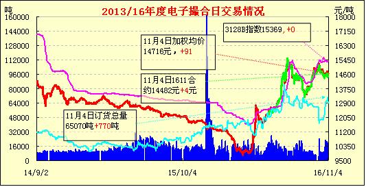 11月4日,電子撮合交易成交量下滑,均價(jià)延續(xù)昨日行情,全線收漲,MA1704漲幅最大,139元/噸,活躍交投主要集中于遠(yuǎn)月合同。近日北疆石河子、奎屯、博樂等地一些機(jī)采棉企業(yè)反映皮棉詢價(jià)、銷售基本停滯,雖然從公檢結(jié)果來(lái)看“雙28”“雙29”甚至“雙30”指標(biāo)的機(jī)采棉比例比較高,適紡性要強(qiáng)于南疆手采棉。但一方面隨近幾日鄭期寬幅振蕩回調(diào),外商、內(nèi)地大型貿(mào)易商拿貨明顯減少,觀望情緒升溫;另一方面由于10月中下旬以來(lái)北疆降雨、降溫比較頻繁,皮棉回潮比較大、雜質(zhì)也相對(duì)較高,貿(mào)易商擔(dān)心移庫(kù)至內(nèi)地交割虧重太大,成生倉(cāng)單貼水偏高。