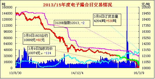 3月9日,電子撮合交易遠(yuǎn)月成交易縮量下跌,訂貨續(xù)增?,F(xiàn)貨掛牌近月合同均價(jià)與鄭棉近月合約價(jià)差99元。當(dāng)日電子撮合交易交易量微減,成交相對(duì)前一交易日萎縮,買賣雙方報(bào)價(jià)心理價(jià)差在百元左右,成交謹(jǐn)慎。訂貨量除近月MA1603合同減少外,其他合同訂貨均有不同程度增持?,F(xiàn)貨市場部分出現(xiàn)止跌小幅反彈,商家拋貨甩貨現(xiàn)象基本消失,并趁機(jī)將部分好質(zhì)量棉花報(bào)價(jià)上調(diào)有50-100元/噸左右,如山東一軋花廠3128B級(jí)提貨價(jià)12250元/噸凈重含稅,較昨日上調(diào)50元/噸。新疆3128級(jí)手摘站臺(tái)價(jià)格在12100-12400元/噸。而質(zhì)量不佳棉花仍顯頹勢,3127B級(jí)價(jià)格在11600元/噸,好差質(zhì)量棉花價(jià)差較大。市場商家對(duì)本次小幅反彈普遍信心不足,認(rèn)為僅僅是目前電子盤市場出現(xiàn)反彈等階段性帶動(dòng),而并不是實(shí)際下游需求影響。