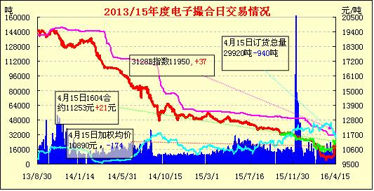 4月15日,電子撮合交易增量下漲。近月合同均價(jià)與鄭棉近月合約價(jià)差97元。今日國(guó)家發(fā)改委發(fā)布輪出公告,輪出將于5月3日開始。國(guó)家統(tǒng)計(jì)局今日發(fā)布一季度國(guó)民經(jīng)濟(jì)運(yùn)行情況。一季度農(nóng)業(yè)生產(chǎn)形勢(shì)平穩(wěn),據(jù)農(nóng)戶種植意向調(diào)查顯示,2016年棉花下降18.8%。