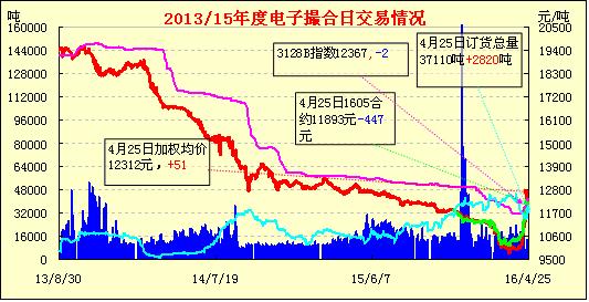 4月25日,電子撮合交易量倉同增,均價漲跌互現(xiàn),近月賣盤掛單積極?,F(xiàn)貨掛牌近月合同均價與鄭棉近月合約價差547元。受發(fā)改委、交易所等風(fēng)險警示或控制棉價過快上漲,現(xiàn)貨市場雖價格堅挺,但追漲氣氛明顯減淡,河北地區(qū)地產(chǎn)3128B報價在12200-12500元/噸公定自提,4128B級在11800-12000元/噸,商家?guī)齑娌欢嘞坌膽B(tài)較濃。且據(jù)儲備棉輪出僅剩最后一周時間,紡織企業(yè)觀望等待儲備棉輪出心態(tài)增濃。全棉紗行情有所向好,但總體改觀一般,期貨市場的炒作并未對現(xiàn)貨市場有多大幫助,市場依然如履薄冰,多持謹(jǐn)慎態(tài)度。