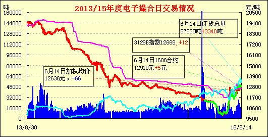 6月14日,電子撮合交易倉(cāng)量大增,各合同均價(jià)近漲遠(yuǎn)跌,盤(pán)中交投活躍集中在中、遠(yuǎn)月合同中。6月13日,山東省發(fā)布雷電黃色預(yù)警,各地普降雨水。聊城地區(qū)氣溫在20-32℃,下午開(kāi)始始天氣轉(zhuǎn)陰,后降中雨,暫時(shí)緩解了棉田的旱情。調(diào)查獲悉,麥?zhǔn)臻_(kāi)始后,當(dāng)?shù)靥鞖鈺r(shí)陰時(shí)晴,但雨水遲遲未下,13日,當(dāng)?shù)佧準(zhǔn)展ぷ骰窘Y(jié)束,部分地塊陸續(xù)澆水,做播種玉米的準(zhǔn)備。當(dāng)?shù)孛藁ǚN植面積已不多,大家主要以小麥、玉米種植為主,大塊地集中種植者更為稀少,棉花主要以零散地塊和房前屋后種植為主,因種植時(shí)間不同,土地質(zhì)量迥異,當(dāng)?shù)?a href='http://m.qdhqly.cn/News/Channel/?CID=31' title='更多棉花信息' target='_blank'>棉花長(zhǎng)勢(shì)略有參差,目前株高分化明顯,管理較好地塊株高在40-50厘米,已有現(xiàn)蕾之意,一般者在30厘米左右,多為八葉一心。中雨到來(lái),給處于干旱的棉田帶來(lái)勃勃生機(jī)。