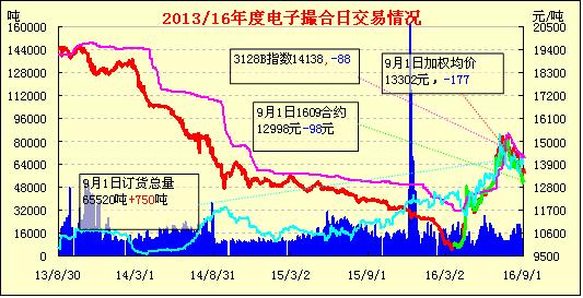 9月1日,電子撮合交易縮量增倉(cāng),均價(jià)多數(shù)收跌,交投活躍集中在近月合同中?,F(xiàn)貨市場(chǎng)調(diào)整為主,山東等地15/16年度2128級(jí)棉花價(jià)格在14400-14600元/噸,“雙29”價(jià)格在15000-15200元/噸,部分人士認(rèn)為目前儲(chǔ)備棉輪出底價(jià)于新棉參考意義一般,主要是兩者品質(zhì)等都處不同檔次,整體等待新棉上市心態(tài)濃重。長(zhǎng)絨棉市場(chǎng)延續(xù)疲軟,山東地區(qū)137級(jí)價(jià)格在20700-21200元/噸,237級(jí)價(jià)格在19900-20300元/噸,而市場(chǎng)預(yù)計(jì)今年仍舊增產(chǎn),后期壓力仍大。
