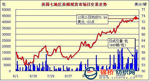 錦橋紡織網(wǎng)—資訊頻道> 棉花信息> 美棉現(xiàn)貨>正文 美國棉花現(xiàn)貨市場行情(12-21)