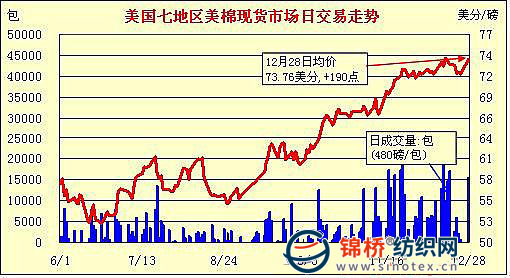 錦橋紡織網(wǎng)—資訊頻道> 棉花信息> 美棉現(xiàn)貨>正文 美國棉花現(xiàn)貨市場行情(12-28)