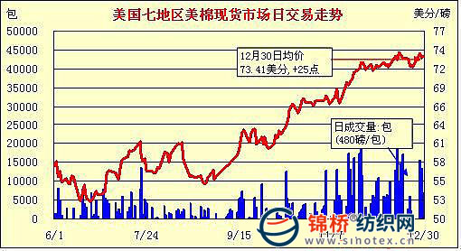 錦橋紡織網(wǎng)—資訊頻道> 棉花信息> 美棉現(xiàn)貨>正文 美國棉花現(xiàn)貨市場行情(12-30)