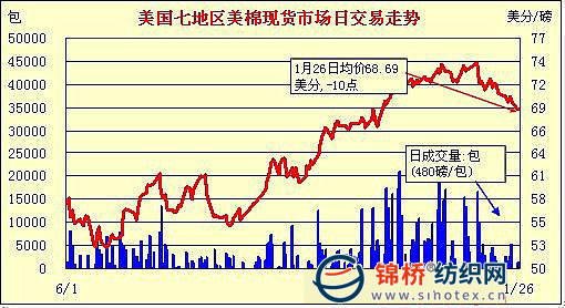 錦橋紡織網—資訊頻道> 棉花信息> 美棉現(xiàn)貨>正文 美國棉花現(xiàn)貨市場行情(1-26)