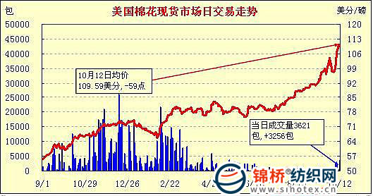 錦橋紡織網(wǎng)—資訊頻道> 棉花信息> 美棉現(xiàn)貨>正文 美國棉花現(xiàn)貨市場行情(10-10-12)