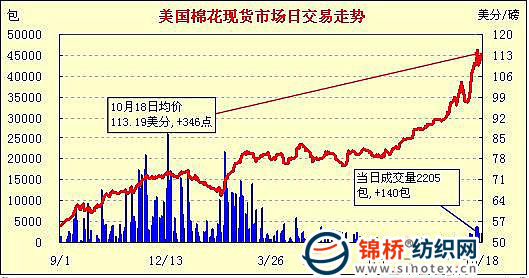 錦橋紡織網(wǎng)—資訊頻道> 棉花信息> 美棉現(xiàn)貨>正文 美國棉花現(xiàn)貨市場行情(10-10-18)
