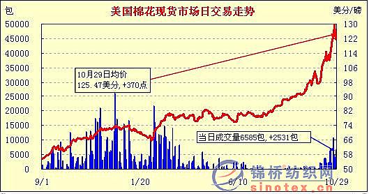 錦橋紡織網(wǎng)—資訊頻道> 棉花信息> 美棉現(xiàn)貨>正文 美國棉花現(xiàn)貨市場行情(10-10-29)