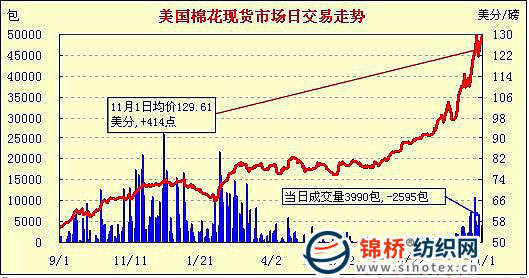 錦橋紡織網(wǎng)—資訊頻道> 棉花信息> 美棉現(xiàn)貨>正文 美國棉花現(xiàn)貨市場行情(10-11-1)