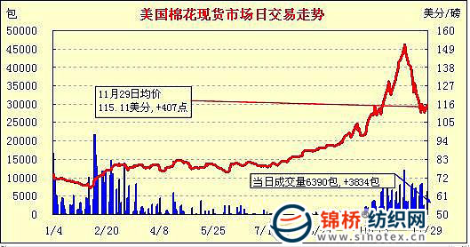 錦橋紡織網(wǎng)—資訊頻道> 棉花信息> 美棉現(xiàn)貨>正文 美國(guó)棉花現(xiàn)貨市場(chǎng)行情(10-11-29)