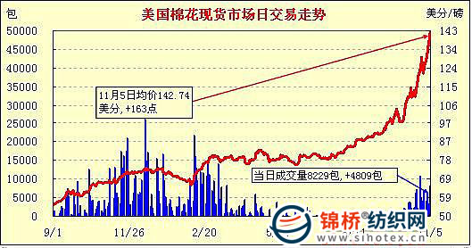 錦橋紡織網(wǎng)—資訊頻道> 棉花信息> 美棉現(xiàn)貨>正文 美國棉花現(xiàn)貨市場行情(10-11-5)