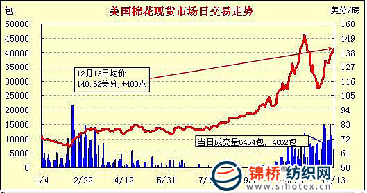 錦橋紡織網(wǎng)—資訊頻道> 棉花信息> 美棉現(xiàn)貨>正文 美國棉花現(xiàn)貨市場行情(10-12-13)
