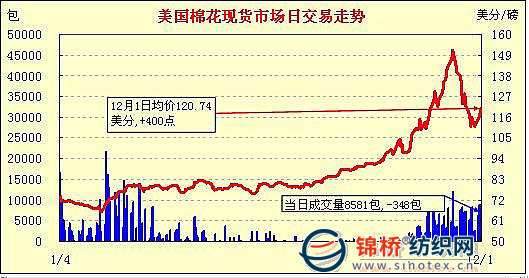 錦橋紡織網(wǎng)—資訊頻道> 棉花信息> 美棉現(xiàn)貨>正文 美國棉花現(xiàn)貨市場行情(10-12-1)