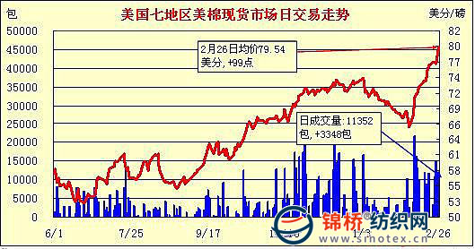 錦橋紡織網(wǎng)—資訊頻道> 棉花信息> 美棉現(xiàn)貨>正文 美國棉花現(xiàn)貨市場行情(2-26)