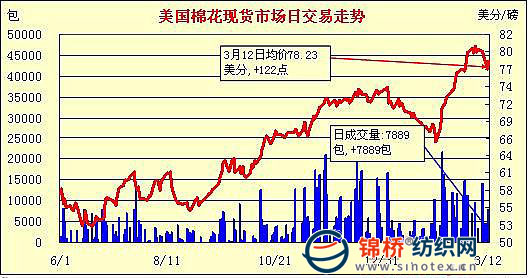 錦橋紡織網(wǎng)—資訊頻道> 棉花信息> 美棉現(xiàn)貨>正文 美國棉花現(xiàn)貨市場行情(3-12)